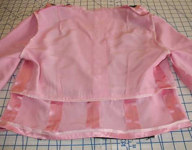 Mi elección de guarnición fue una historia diferente. El rayón color rosa pálido satinado vivía en mi escondite de tela inmensa y fue el contraste perfecto con la lana negra. Sin embargo, los bordes comenzaron fray tan pronto fueron cortados. Me preocupaba que las costuras consigue más estrés que otros podría seguir fray con desgaste, así que cubrí con rayón abrazo apretado de la costura vinculante.