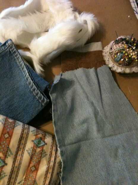 Esta es una lista de los materiales utiliza, por supuesto puede utilizar cualquier tipo de tela tiene alrededor o comprar algunos crees que haría tu perro más cómodos de moda. Pero como dije, soy un cordero cavó a través de mis retazos de tela y viejos desgastado jeans que había querido "reciclar" en algo, y eso es lo que opté por usar.