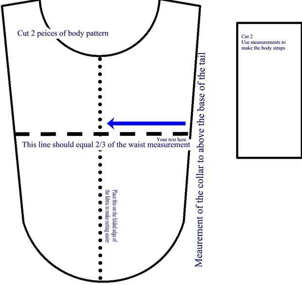 - Las correas serán la longitud restante de la anchura de cuerpo además de 4 pulgadas para permitir el cierre. La anchura de las correas se puede hacer como amplia o, que creo que sería cómodo. Para un perro más grande, más amplia correas, etc.
