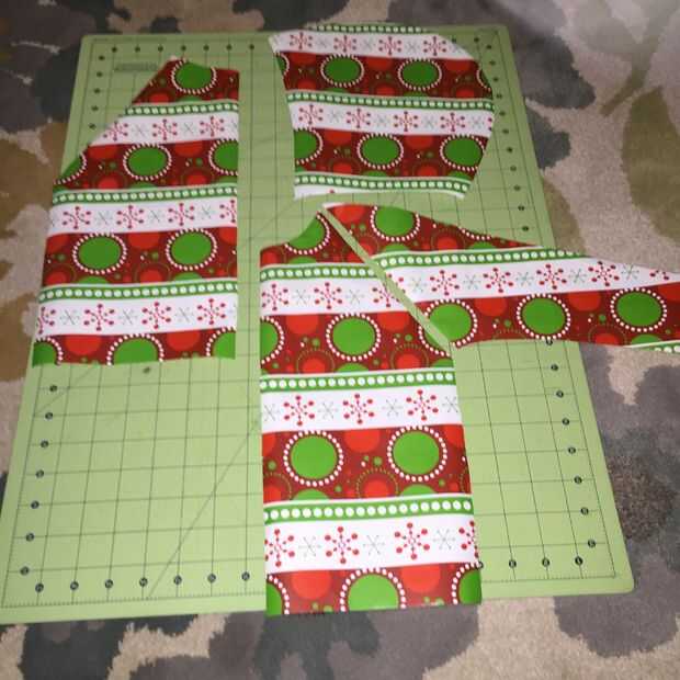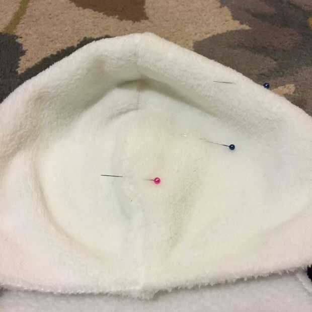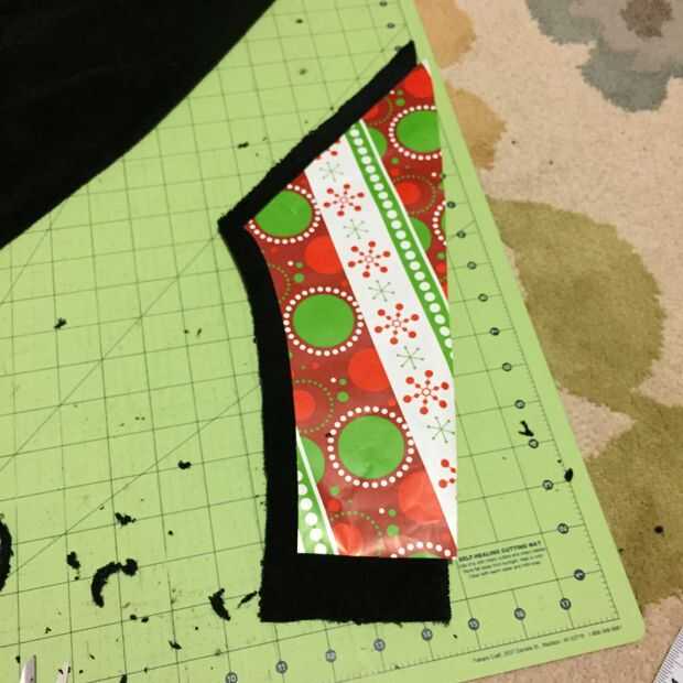Corte de mangas (2) en el pliegue (el lado más largo) en polar negro. Agregar 3/8" costura subsidio por todas partes pero añadir 1" en el dobladillo inferior.