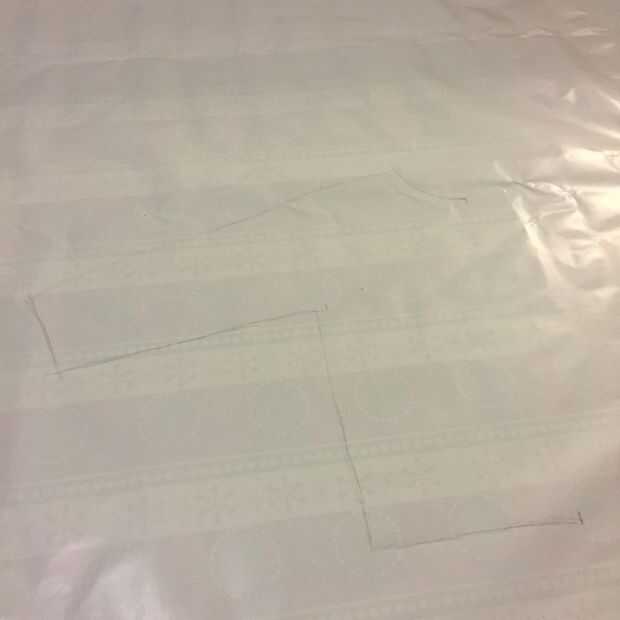 Doble primero la sudadera con capucha por la mitad un brazo y la blusa delantera conectada es todo lo que está mostrando. Recostarla y estirar los bordes para conseguir la forma correcta. Trace una línea alrededor de los bordes.