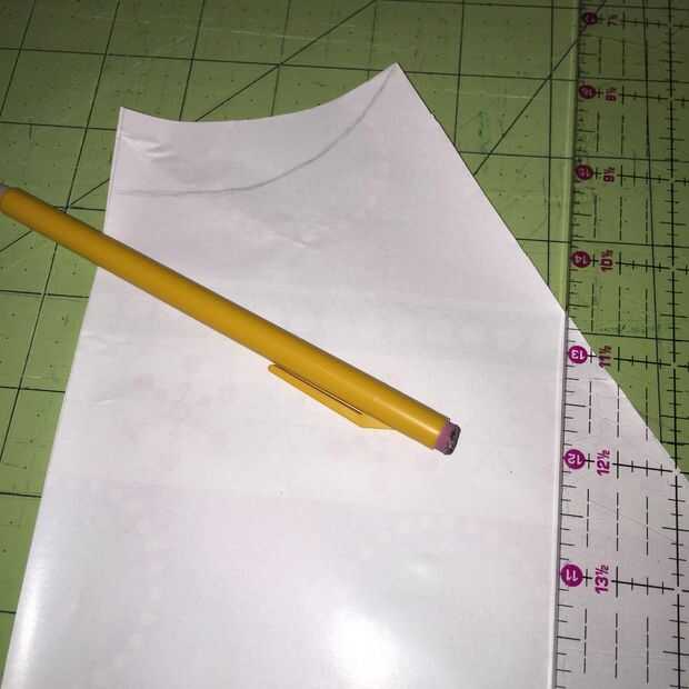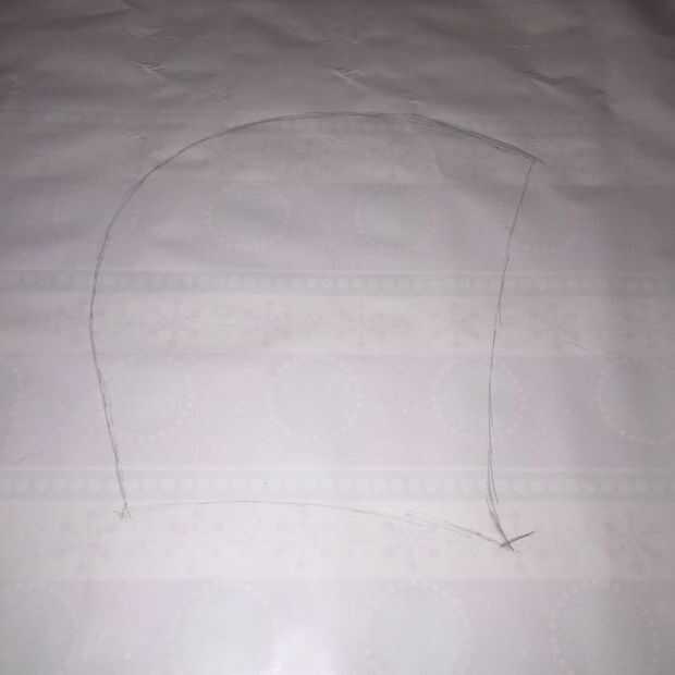 Para la campana, doblar a la mitad y trace. Tienes que medir el cuello de capucha y asegúrese de que esta medida coincide con el total del escote de la blusa delantero y el escote trasero de blusa suman. Ajustar la campana para que coincidan con la blusa.