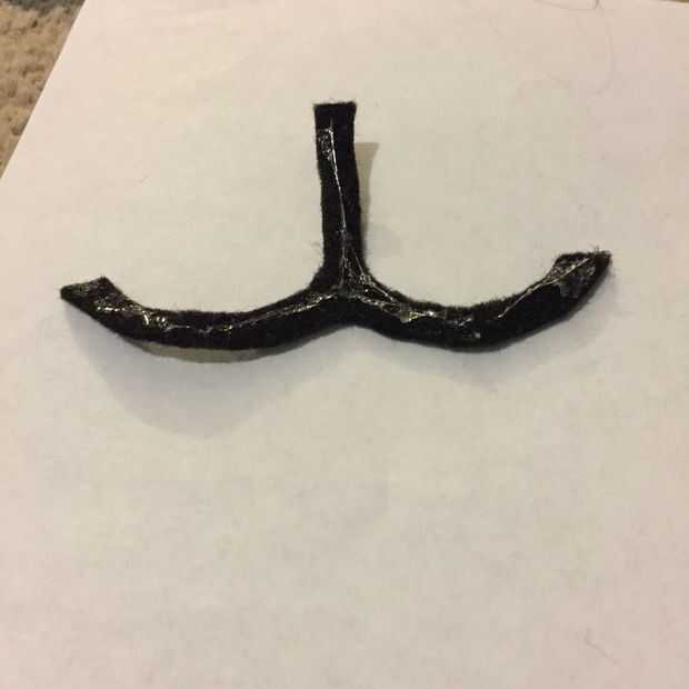 Pegué los ojos en fieltro, la nariz y la sonrisa en modo habría líneas de puntada.