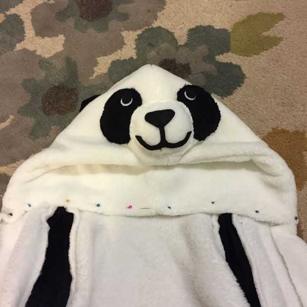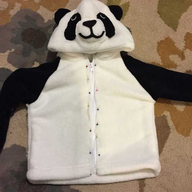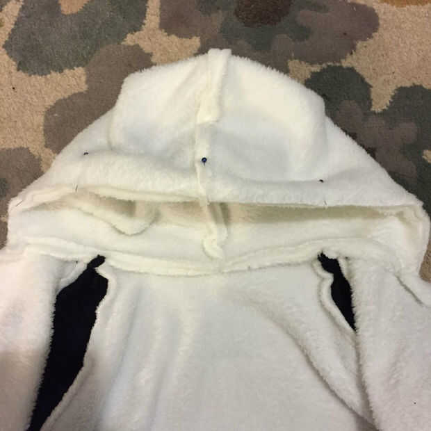 Ahora que te cara se hace puede terminar la campana. Coser la capucha apertura bordes con derecho lados juntos. Dé vuelta y empujar la campana dentro de la otra. Doblar el centro del delantero (borde de la cremallera) en para que se alinee con el borde de la campana y perno. Prender los escotes campana juntos por lo que la guarnición oculta todo y coser.