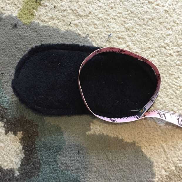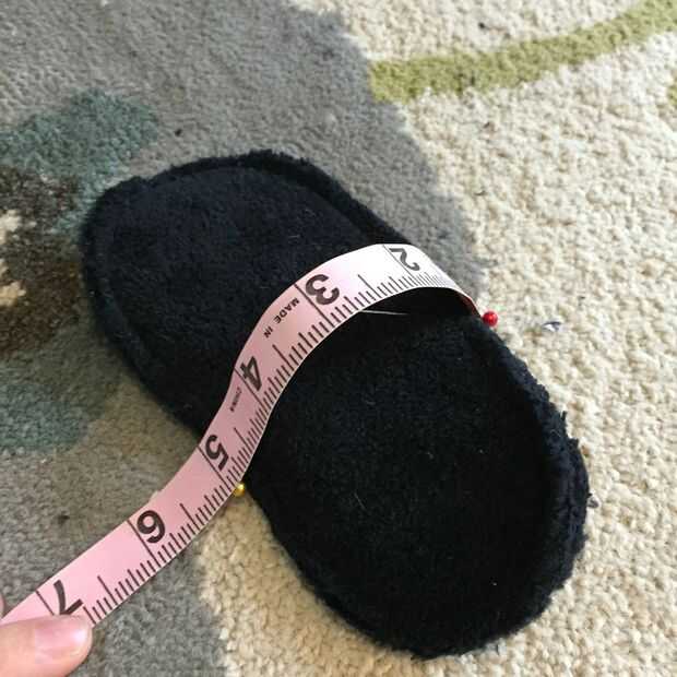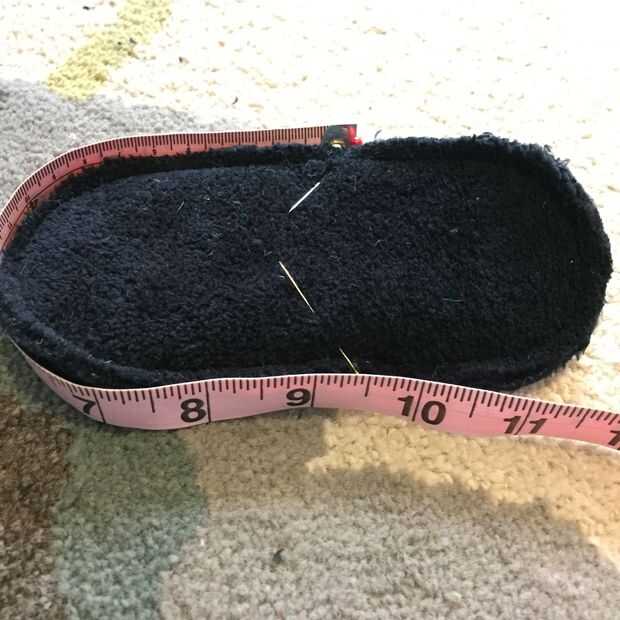 Tomar la cinta de medir y hacer un lazo donde el tubo acabaría como en mis fotos. Hacerlo como arco que desee para su zapato. Esta medida será cortes fuera el otro patrón del rectángulo que puso en el lado. Ahora mida el ancho de la suela donde estaba el arco. Marca muescas en rectángulo de ancho único centrado en el borde inferior. Coloque la cinta métrica en el papel utilizando la medida arca que tomó entre los dos puntos que marcó. Trazar el arco cuando la medición es correcta. Cortar el arco. (4) espejo cortar en la tela, corte (2) en bateo con 1/2 cortado el borde. Hacer un sándwich de bateo con lados mal juntos y coser cuidadosamente a lo largo de todo el filo.