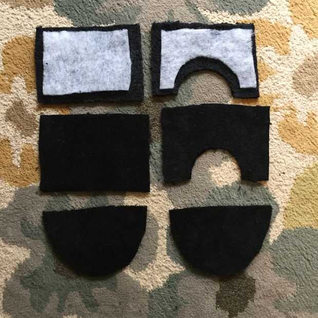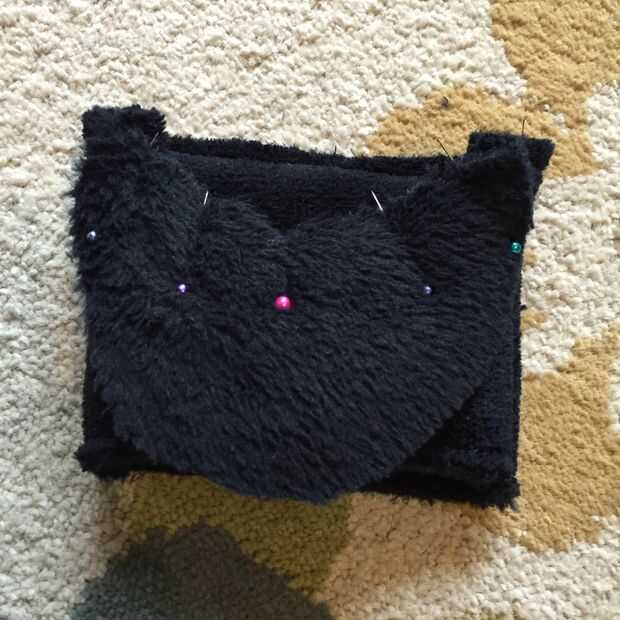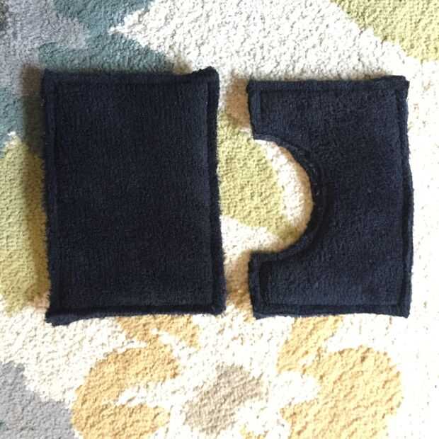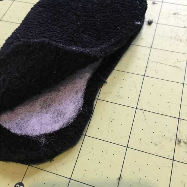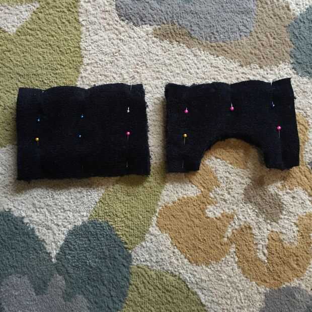 Para el paquete del calor, cortar 4 piezas de algodón 100% en la misma forma del bolsillo delantero. Dos juntos y coser el borde curvado e invertir. Añadir 1-2 cucharadas de arroz en cada uno. Coser el borde inferior. Repita para el otro lado.