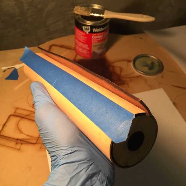 Cemento de contacto necesita presión para enlazar. Utilice un trozo de PVC, una botella de vidrio o algo duro y liso para presionar firmemente el material en el PVC.