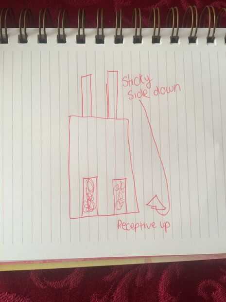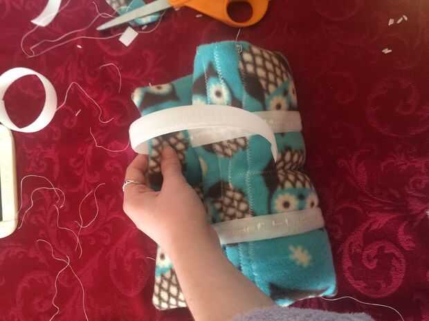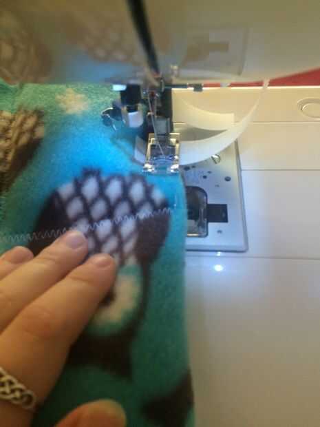 Ahora coser lado pegajoso hacia abajo, justo encima de lado receptivo