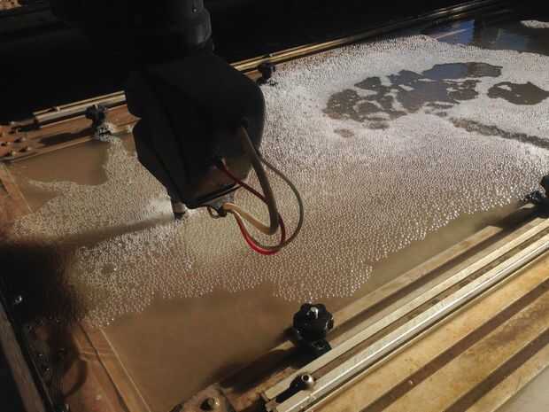 La parte más difícil de este instructable es cortar la placa, si tienes acceso a un chorro de agua es fácil pero si no es sea necesario realizar la plataforma de madera. Utilizamos la herramienta de corte por chorro de agua en el muelle 9 de Autodesk. Techshop también tiene un chorro de agua que funcione para esto.