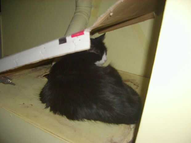 Hace unos años le vengo construyendo un hogar calefaccionado al principio de cada invierno, y ella lo aprovecha más o menos 20 horas por día. Duerme ahí cuando no lo hace sobre mi cama o al lado de una estufa. Y a mí me producen una gran satisfacción ver que ella valore mi buena intención.