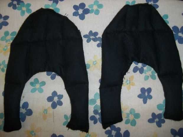 Llenar tus piezas de arroz (y aceites perfumados si queremos) aproximadamente 4 onzas para fondos y 8oz para la parte superior. Luego coser las piezas cerradas. En posición plana y suave el arroz alrededor y coser a través de la pieza superior un par de veces para que el arroz se mueva. También puede hacerlo en la parte inferior pero no lo hice porque quería moverse el arroz con mis dedos de los pies. Coser la pieza superior Junta donde sería la parte posterior de tu tobillo. A continuación coser la pieza superior a la parte superior de la pieza inferior. Luego voltear de adentro hacia fuera. Quería que mi llano pero usted puede agregar decoraciones recuerden no agregar ningún metal o algo que se derrita en el microondas. Caliente durante 60 segundos y disfrutar de los pies tostados.