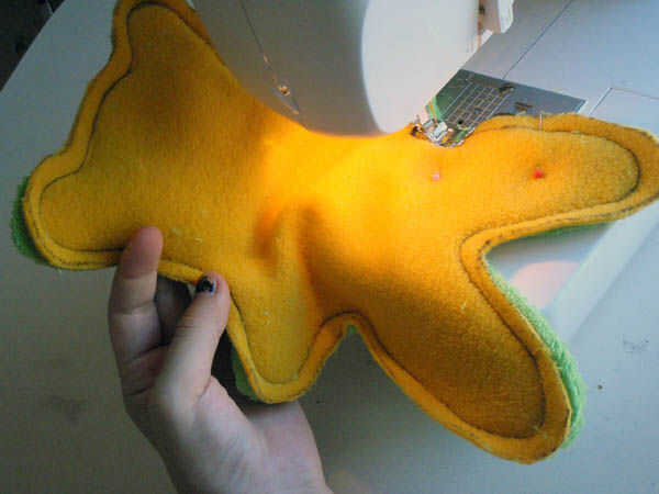 No te olvides de coser hacia adelante, luego atrás, luego remite otra vez para unas puntadas al final muy muy principiantes para bloquear de su costura y evitar que se deshilache cuando se vuelva tu amigo.