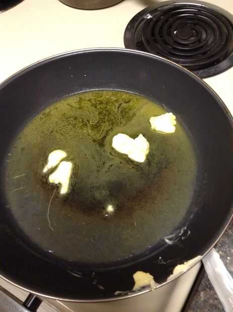 Calentar una sartén a baja. No pero intenta cocinar, fundir la mantequilla y calentar la salsa y el vinagre.