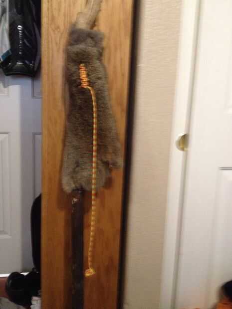 quería atar este bastón que encontré y esta piel del conejo para mantener mi mano caliente y senderismo. Pero no sólo quiero amarrar en y ser aburrido quería caminar con estilo. Opté por un puño de mono sobre ella así que aquí está el proceso.