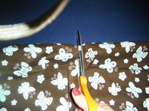 Cortado un 10 x 10 (o cualquier tamaño que usted está usando) pieza de la tela, asegurándose de que la tela se dobla por en sí mismo, hacer una doble capa con los bordes alineados. De lo contrario necesitará cortar dos piezas y coser un borde adicional.