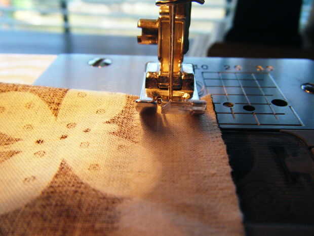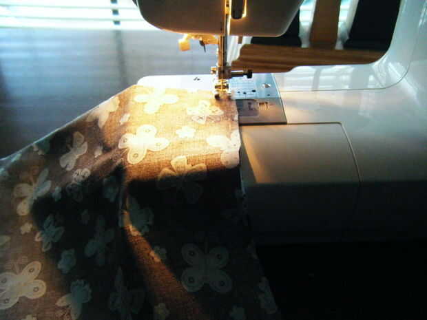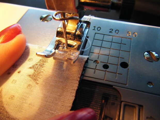 Inicio en el límite indicado en la última foto, asegurándose de dejar margen de costura. Cosa a la siguiente esquina. Una vez que termine ese borde, asegúrese de cortar cualquier colgante de hilo. Coser el lado opuesto a continuación.