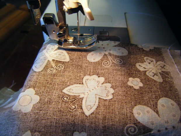 usé 5 pulgadas precortadas cuadrados de la sección de acolchar.Paso 1: Pin tela derecho lados juntos.Paso 2: Cose alrededor dejando una abertura para poner el arroz en. Puntada atrás en las aberturas.Paso 3: Muestra la apertura.Paso 4: Dedo uso para