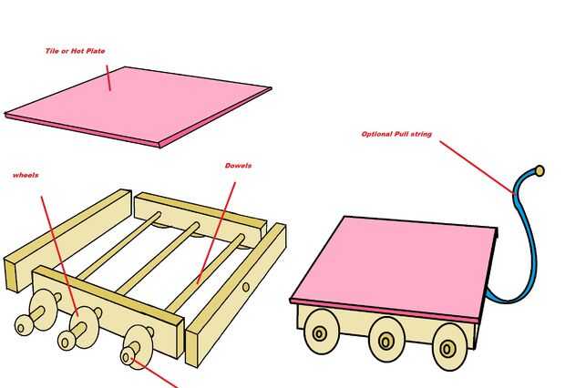 Encontrar que el coche de juguete adecuado puede ser difícil, así que usted puede optar en su lugar para construir su propia base del balanceo. Necesita para piezas de desecho de madera ligeramente más corto que la longitud de la teja que va a utilizar como la placa. Taladre los agujeros para un palo de espiga para insertar como eje para las ruedas. Por cuánto tiempo el árbol necesita para hacer que deje suficiente espacio para las ruedas arte de madera y una tapa para evitar que las ruedas viene de la marca.