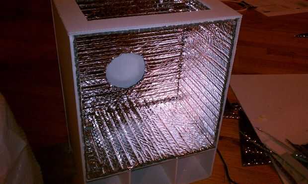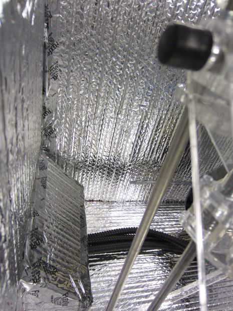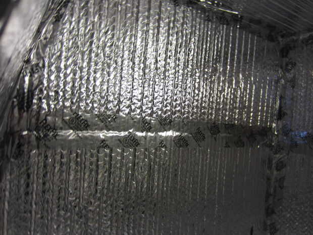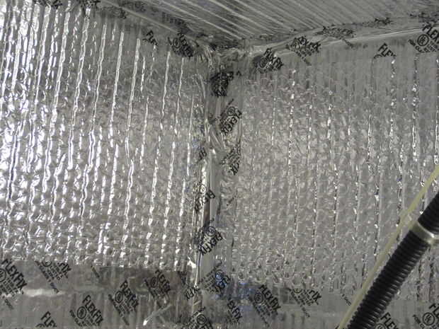 -Usa un marcador negro, tijeras y una pistola de pegamento caliente, cubrir el interior las paredes de la cámara, puerta y climatizada con aislamiento Reflectix. Utilice cinta Flex Nashua para cubrir huecos y esquinas.