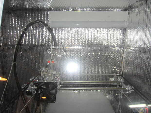 -La caja del calentador se puede conectar a la cámara con cinta Flex de Nashua en el interior una vez que la cámara de construcción de calefacción se coloca sobre la impresora 3D (en su ubicación permanente).