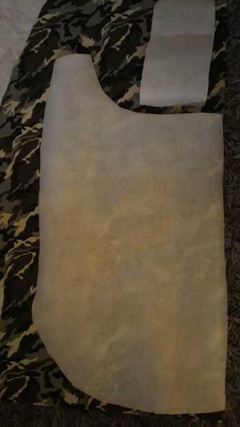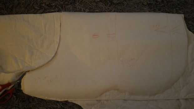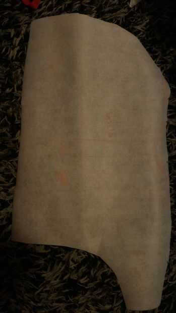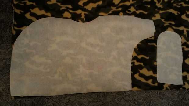 Luego lo mismo con la guata y el forro. Cortar la aleta del vientre una pieza de cada tela.