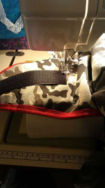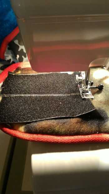 Corte una pieza esponjosa del velcro y coser en el interior de la tapa de pecho, a la derecha de los perros. Adhiera un pedazo espinoso a la lona en la parte del pecho, en los perros de izquierda. Utilizar piezas de menos de 6 pulgadas de largo. Luego coloque dos piezas de velcro esponjoso al lado del lado del paño grueso y suave polar de la aleta del vientre. Luego dos piezas más largas de velcro Espinosa al lado, que coinciden con la venda del vientre cuando se hace arriba en la lona.