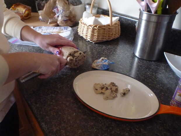 Tomar la masa extra y poner en una bolsa ziplock y poner en la nevera para ahorrar para más deliciosas galletas!