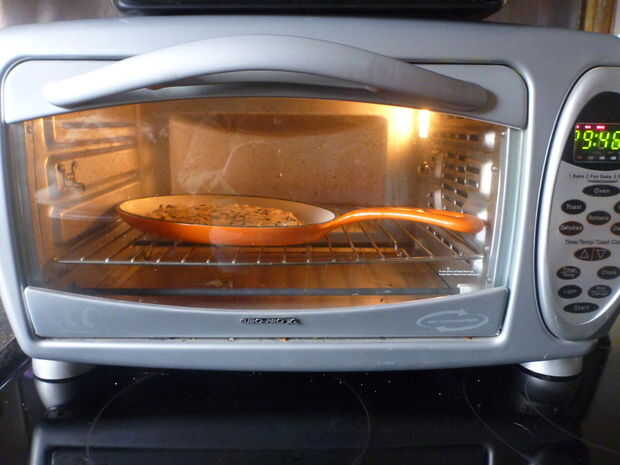 Utilizamos un horno tostador para ahorrar electricidad, pero también podría funcionar un horno normal. Siga las instrucciones de la cookie en su envase de masa de galleta. Vas a querer verlo y sacar cuando es un bonito color dorado. Nuestro tomó unos diez minutos sin precalentar nuestro horno pequeño primero.