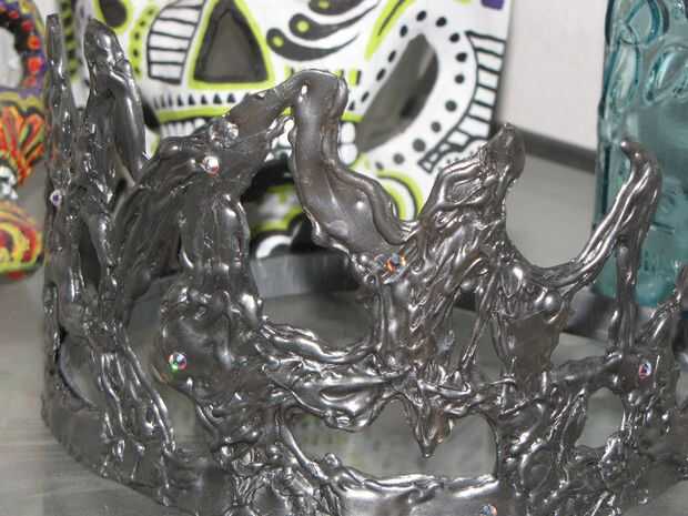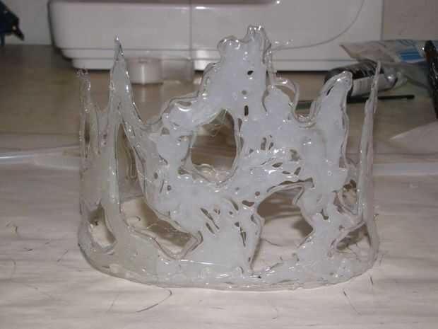 Considero a mi mismo un Crafter no artista y utilizo pegamento caliente todo el tiempo. Me encanta lo bien bonos de pegamento caliente y tiene capacidad para secar completamente duro y no pegajoso. Hace unos años visten como el cisne negro de la película con Natalie Portman. Tenía que tener una corona que fue exactamente como el de la película, pero los pocos que encontré eran increíblemente caro o similar no lo suficientemente. Pegamento caliente era la respuesta para crear la corona del cisne negro perfecto. Esta corona está hecha completamente de pegamento caliente que ha sido pintado.