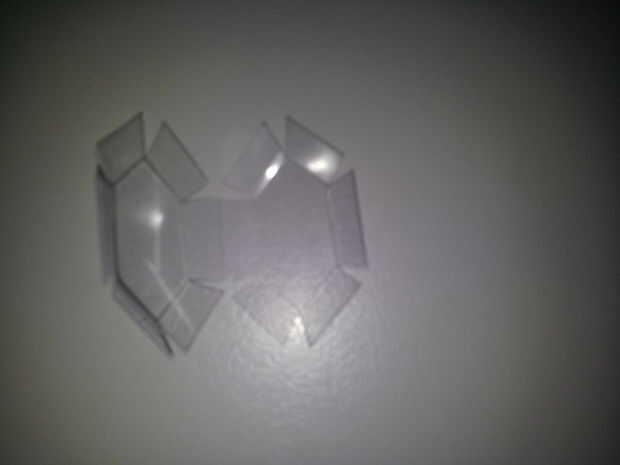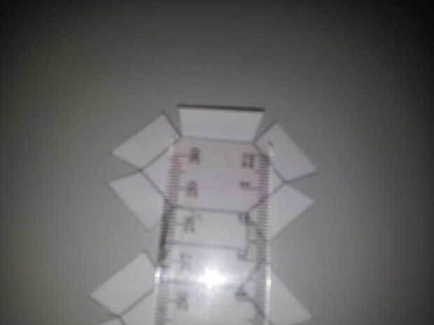 Utilizando el borde de una regla, dobla el plástico a lo largo de las líneas negras. Deben terminar como cuadro 5.
