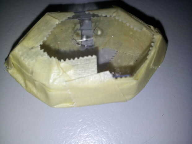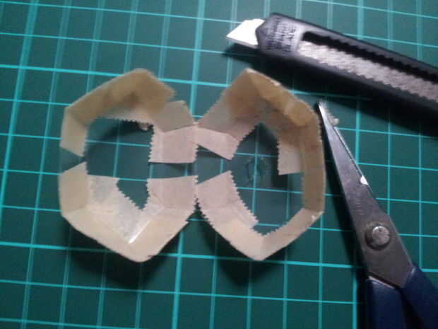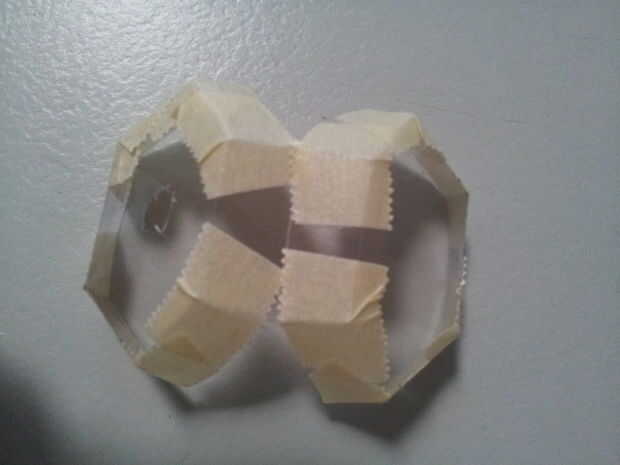 Utilizando pequeñas tiras de cinta adhesiva se unen los bordes juntos para darle adjuntos mitades del molde como se muestra en la imagen. Después de haber grabado todo el empalme en lugar, reforzar con otra capa de cinta adhesiva.