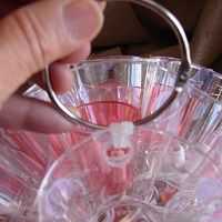 Fundir un agujero entre 2 tazas y hacer una suspensión. Usar ataduras de cremallera.