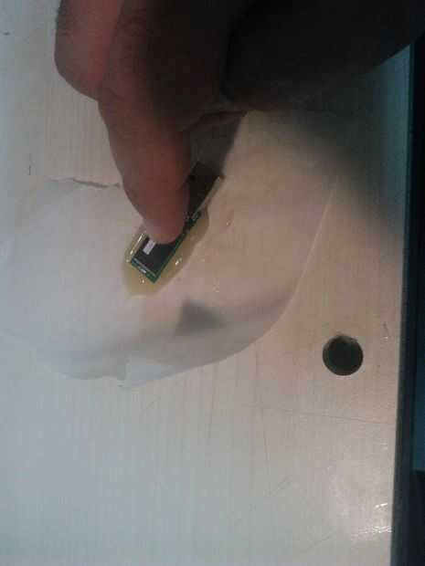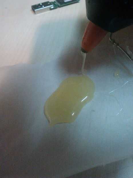 successivamente adagiate la memoria flash sulla colla calda, evitando di coprire lo spinotto