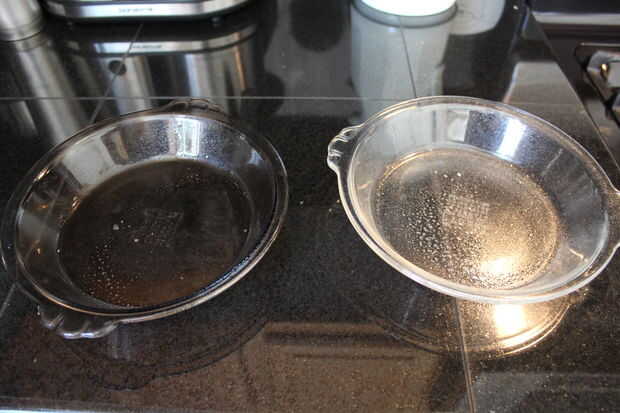 Vaso pequeño aerosol dos platos de hornear con aceite antiadherente.