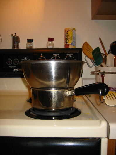 Para barras de chocolate utilizar una caldera doble o más fácil, hervir una pequeña olla de agua y poner una taza de metal en la parte superior. El vapor calienta la taza de metal en la parte superior para que el chocolate se derrita en ella. Vierta pedacitos de agua en el chocolate hasta que se trata de un líquido. Si fuera además de nutella o la mezcla de chocolate con leche, poner cerca de un tercio de la barra. Si es por cuenta propia, se pegan unos 3/4 de la barra, más si quieres más chocolate. Espere a que la olla se enfríe, luego Vierta el agua chocolate.