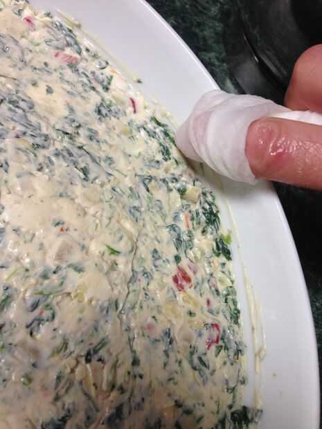 Espolvorea la otra mitad del queso parmesano encima de la dip.