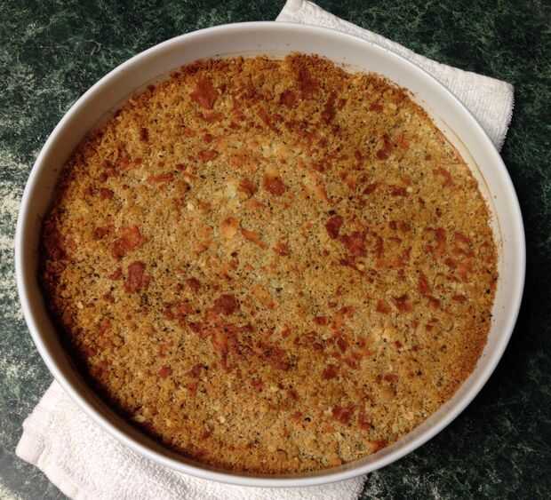 Pop el plato en el horno y hornear durante 25 minutos aproximadamente o hasta que las migas tengan