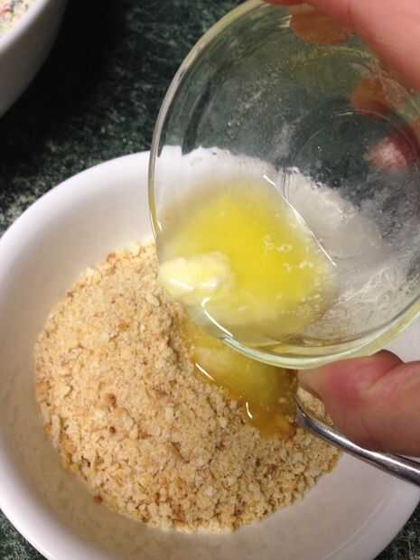 Combinar la mantequilla con el pan rallado. No tienen que ser perfectamente mezclado, sólo