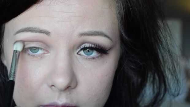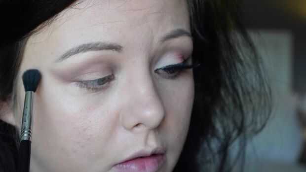 Así que primero tomó un tono beige muy claro y aplicar esto al pliegue del ojo. Luego con un pincel de lápiz aplica un tono más oscuro de marrón y aplica esto en mi pliegue y con mi cepillo mezcla que mezclado esta fuera y lo asignan más suave.