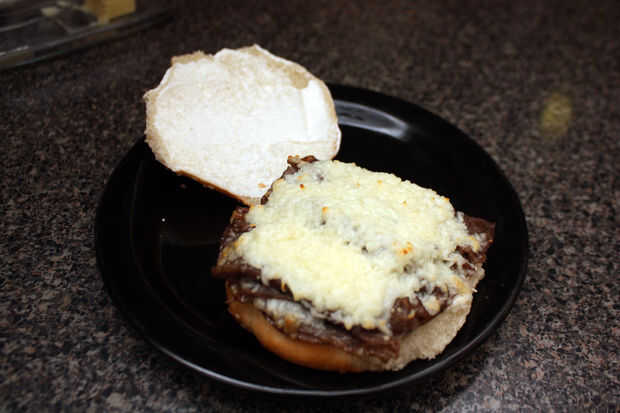 estaba de humor para algo diferente, caliente, relleno y barato, al principio estaba pensando en un filete de queso Filadelfia imitación pero queria la rampa hasta el gusto por lo que he añadido una salsa marrón envasada... Aquí está cómo lo hice...P