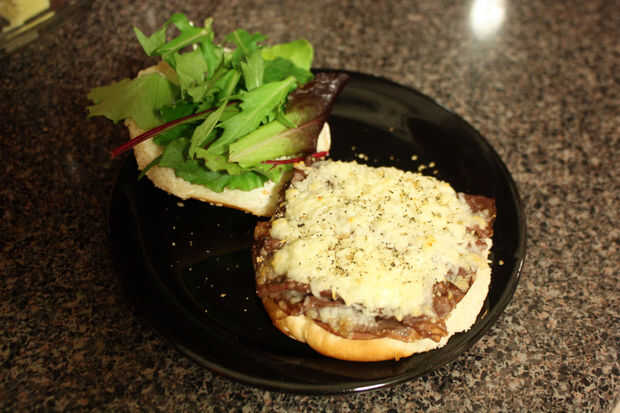 estaba de humor para algo diferente, caliente, relleno y barato, al principio estaba pensando en un filete de queso Filadelfia imitación pero queria la rampa hasta el gusto por lo que he añadido una salsa marrón envasada... Aquí está cómo lo hice...P