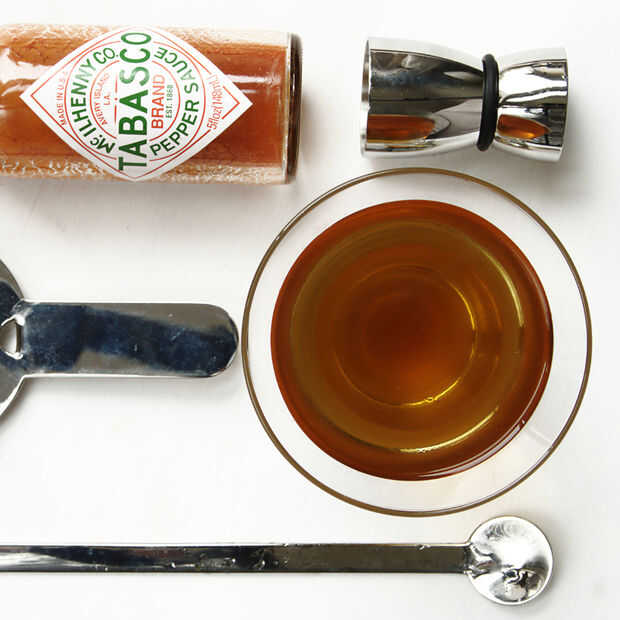 Agite o revuelva 1 oz vodka, 1 oz licor de nuez, licor de canela ½ oz, oz ½ jarabe de arce y unos toques de salsa caliente con hielo.