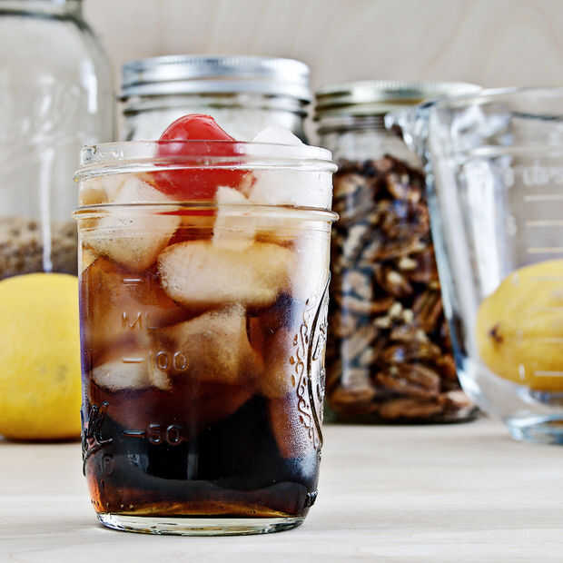 Decorar con una cereza al marrasquino y servir con una pajita.