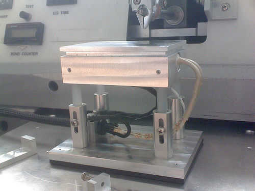Para lograr el ajuste vertical decidí utilizar barras de plástico de alta temperatura sostenidas por la tubería que tiene una ranura en el lado para el uso de un tornillo de ajuste.