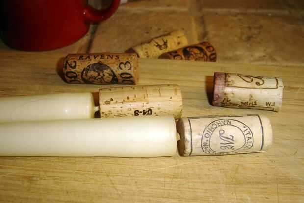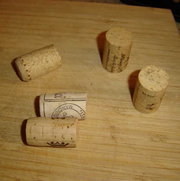 Cuando encuentres a cuatro buenos ejemplares, corte un de media pulgada o menos, esta parte es suya. Corte primero a usar como una guía para el tamaño de los otros. Angular o redondeado extremos corchos y el corte ayuda a aplanar un lado.