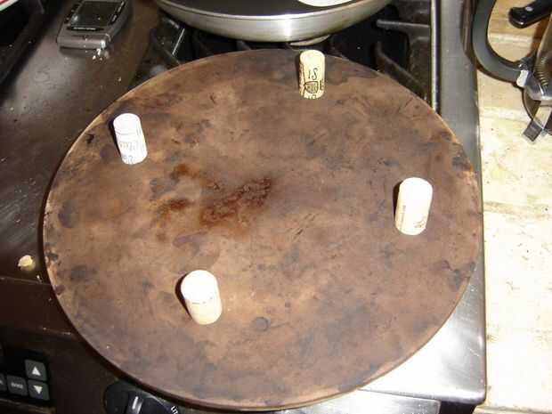 Puede utilizar una olla u otra cosa plana y horno. Ahora coloque los tapones un poco más fuera de donde desea que la vela final posiciones ser.