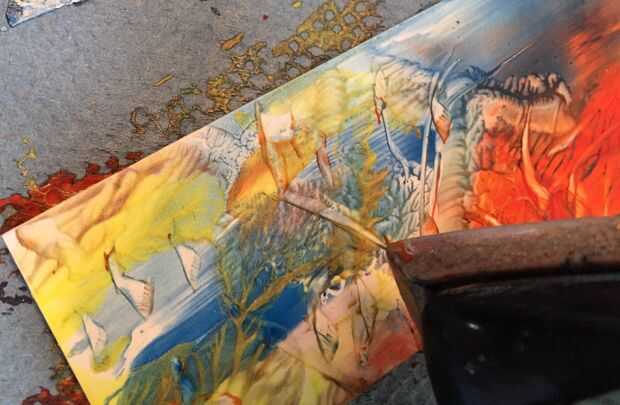 Use el borde de la plancha para hacer marcas. Una especie de 'manos dibujando' pero produciendo efectos únicos.