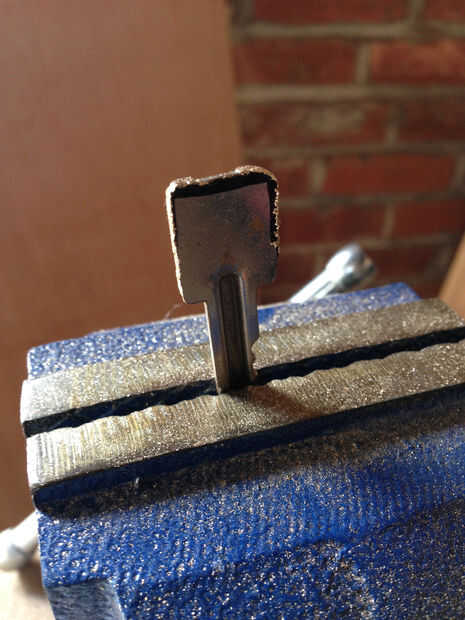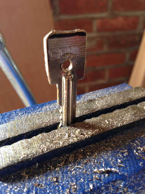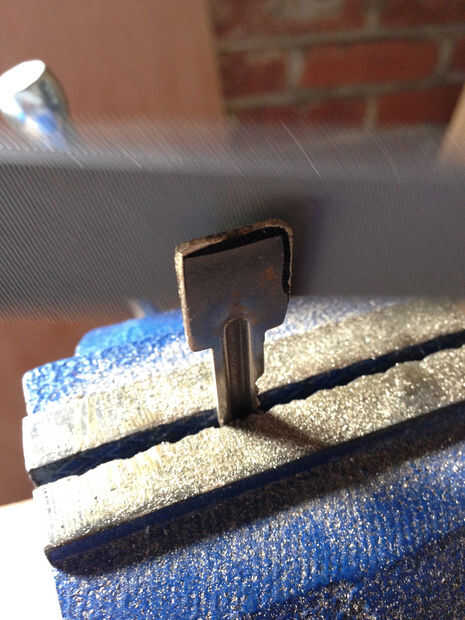 Con el cuerpo de fundición ahora gratis, usted necesitará recortar su clave caber en el marco del cuerpo. Puede utilizar muchas herramientas para realizar esta tarea (muela, aditamentos Dremel, etc.). Usé mi nueva herramienta oscilante Fein MultiMaster ganada en el concurso de plataforma para moler lejos el exceso del órgano clave. Después de cortar lejos la mayor parte de la cabeza de la llave, puede utilice una lima para suavizar los bordes de tu trabajo.