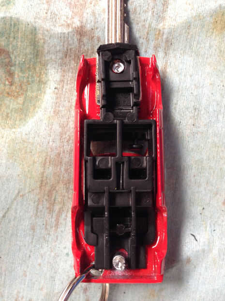 Con la llave en su lugar en el remache delantero y el anillo dominante ataron al parachoques trasero, usted necesitará hacer un par de alteraciones en la pieza de plástico interior. Encontré tijeras y un archivo para adaptarse perfectamente a este trabajo.
