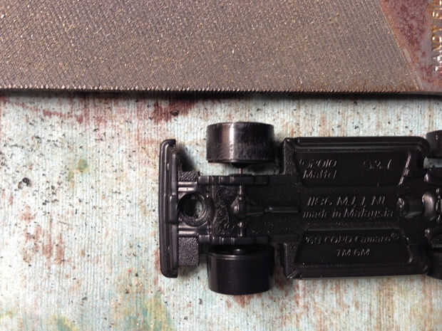 Examinar las fotos de arriba, puedes ver que necesita presentar un poco lejos del tren de aterrizaje posterior que permita la libre circulación del aro. También, dependiendo de cómo está diseñado el interior de su automóvil de modelo, puede que necesite que recorte la parte delantera que ahora interfiere con la colocación de la llave. Incluso con esta sección quitada, el interior se mantendrá en lugar una vez que el coche se vuelva a armar completamente. Antes de fijar el coche hacia atrás junto con el pegamento, asegúrese de que todas sus piezas encajan correctamente.